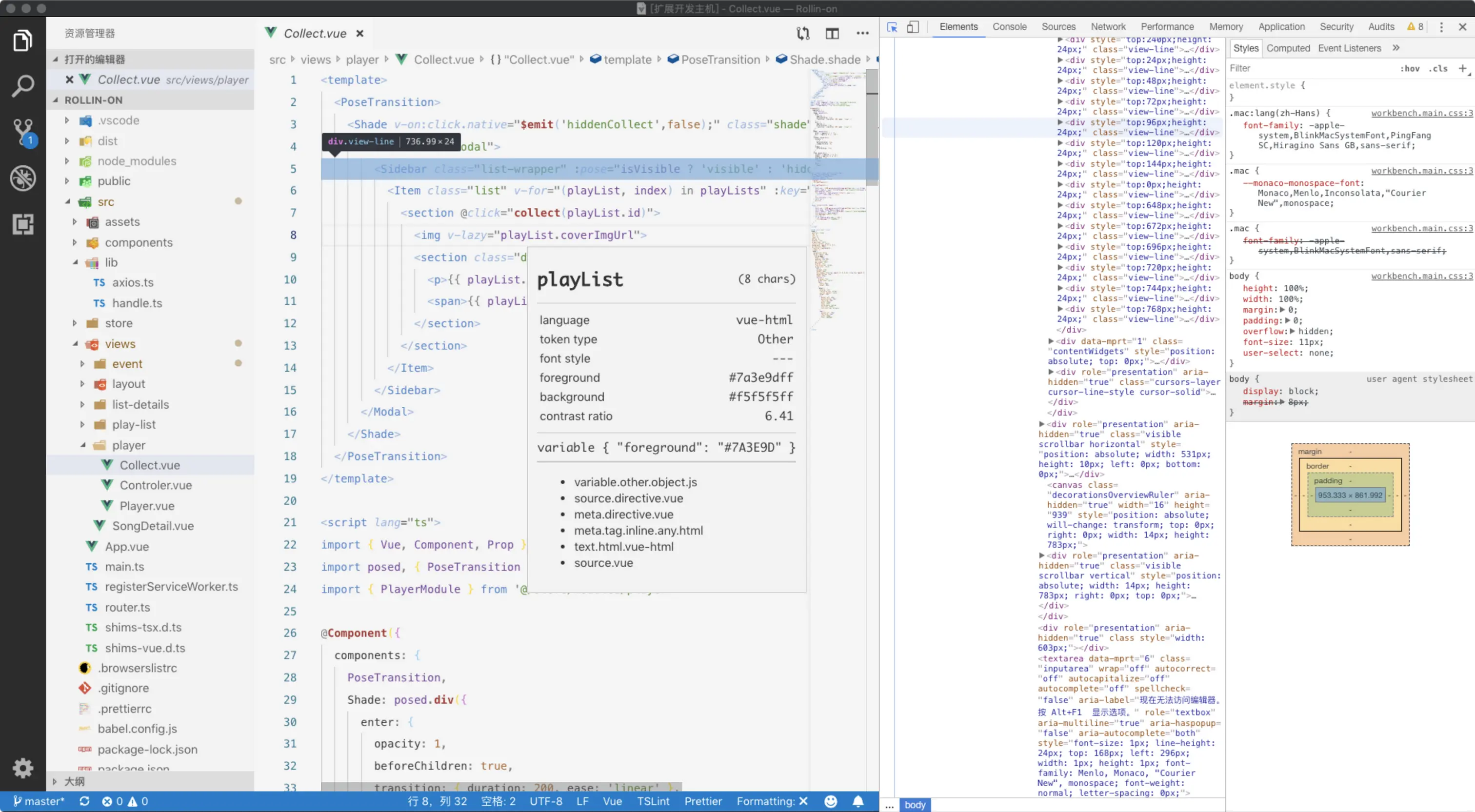 现在你可以看文件中每一个字符的颜色配置在哪了,只需要在 json 文件里搜对应的配置就好了。