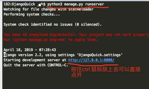 python3 manage.py runserver将会在浏览器看到