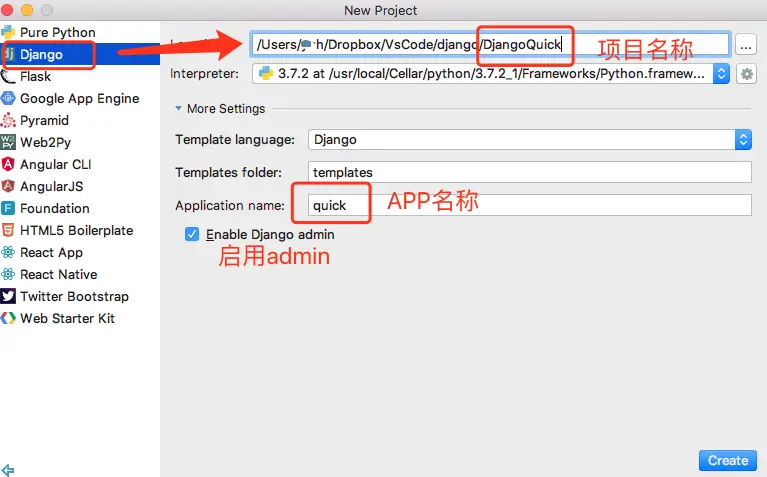 django-admin createproject DjangoQuick