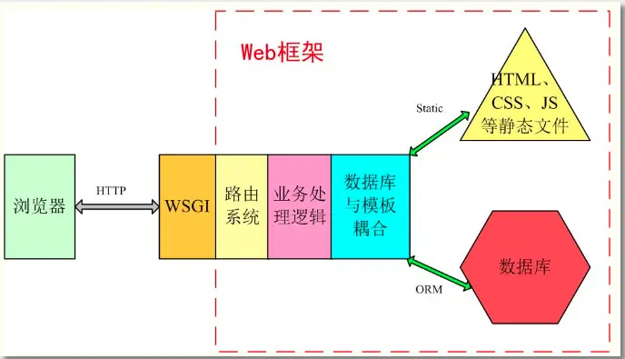 2.web框架介绍 web框架的概念就像建房子,地基、支撑柱、大梁的骨架还有其他沙石、地板等等材料已经有了, 剩下的就是靠你自己组装起来。犹如积木一样。