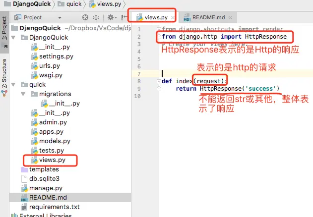 打开quick目录下的views.py,输入一下内容