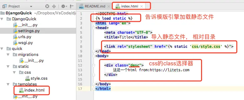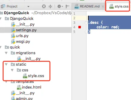 在quick目录下新建static/css/style.css文件。
