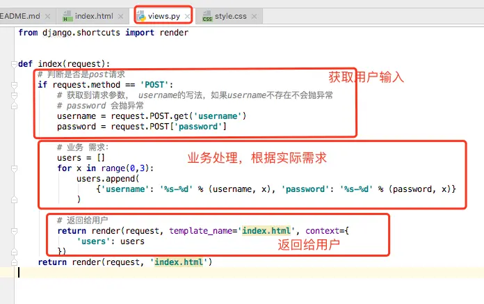 # 返回给用户 模版中使用到的users就是这里传递进去的