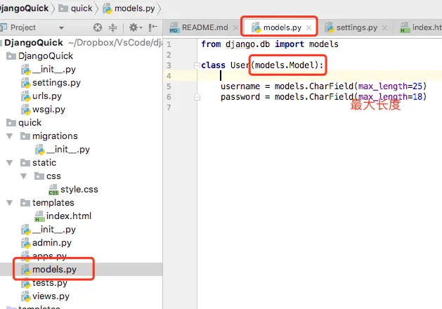 打开quick下的models.py