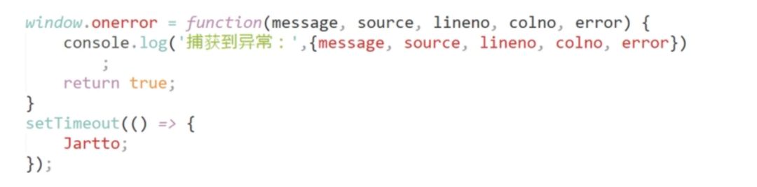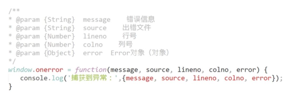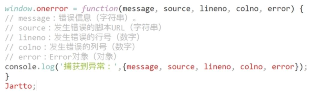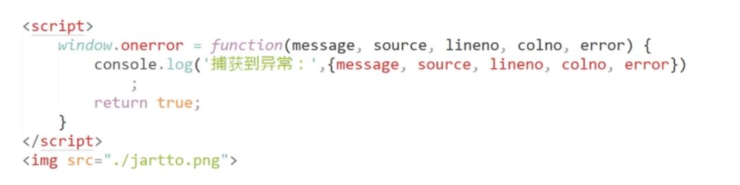 补充一点:window.onerror 函数只有在返回 true 的时候,异常才不会向上抛出,否则即使是知道异常的发生控制台还是会显示 Uncaught Error: xxxxx
