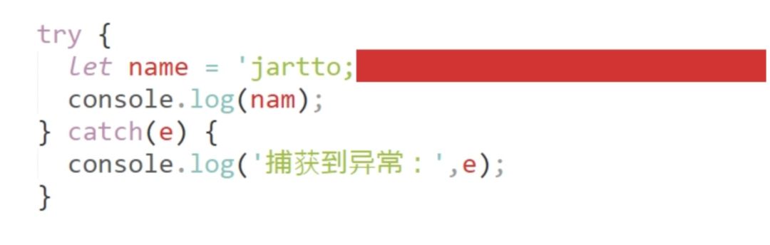 2. 不能捕获到语法错误,我们修改一下代码,删掉一个单引号
