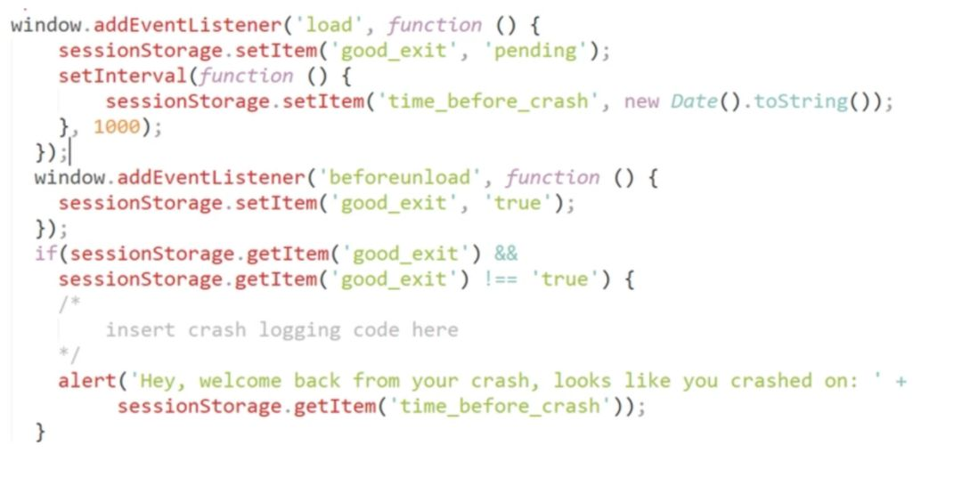 利用 window 对象的 load 和 beforeunload 事件实现了网页崩溃的监控。
