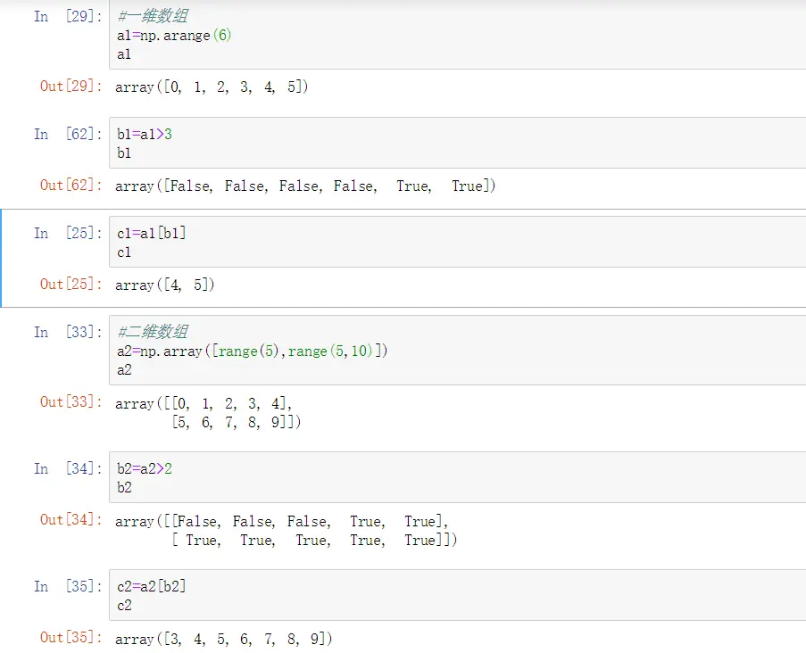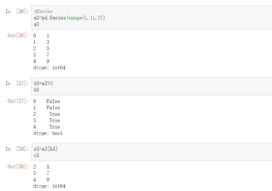 - 一、对数组或Series用布尔数组进行过滤,滤去对应位置为False的值,只保留对应位置为True的值: