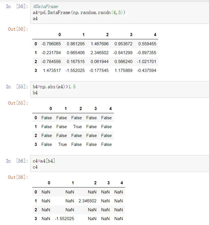 - 二、对DataFrame用布尔数组进行过滤,在False的位置填充缺省值(注意区别):