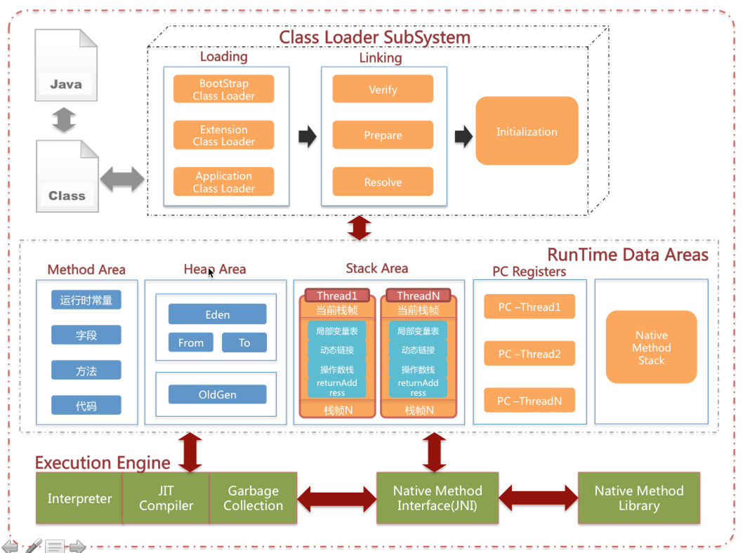 jvm被分为三个主要的子系统: