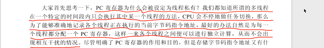 - 每条线程都有一个独立的线程计数器(各条线程之间的计数器互不影响,独立存储);