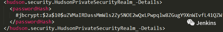 在 config.xml 文件中的 passwordHash 节点可以看到用户密码加密后的密文哈希值: