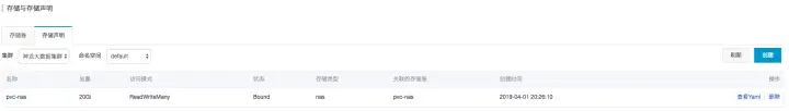 - 首先在容器服务控制台创建Nas相关的存储PV与PVC。