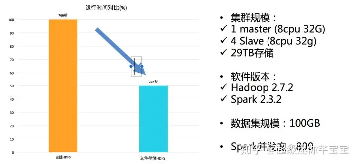 从某种角度来讲,读写更快是不可能的,因为独立本地盘可以通过挂足够盘并行的方式进行提升的,但是要注意的问题在于,当我们通过MR进行任务切割后,每个子任务的瓶颈是否还是在磁盘IO上,大部分情况下答案是否定。上面我们测试的ECS规格内网的带宽已经可以到达6Gbps,如果全部网络带宽都换算成磁盘的IO的话,这个量级的数据吞吐IO相比8C32G的算力而言是冗余的,所以此处我们提到的读写更快是指在IO冗余的前提下提升读写速度的方式。OSS是阿里云上提供的对象存储,读取不同单个文件的IO是并行的,也就是说如果你的业务场景是大量中小型文件的并行读取,例如在Spark中读写目录的方式,那么此时IO的读写速度近似是线性增强的。如果依然希望使用HDFS的开发者,阿里云也提HDFS存储服务,提供了大量存储与查询的优化,和传统的自建的HDFS相比有50%左右的提升。