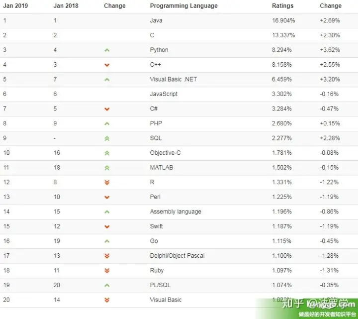 除了google趋势,还可以来看看在TIOBE语言排行榜上的表现。点击链接