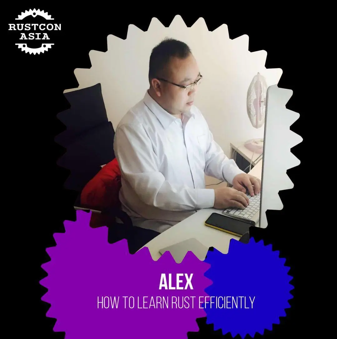 Alex 将会在 RustCon Asia 进行两场主题分享。在 talk 环节,Alex 将会为大家介绍 Rust 基础,主题为「How to learn Rust efficiently」,听完后想必会对“Rust 学习曲线高”的真正原因有所了解。在 workshop 环节,Alex 将会带来「Rapid Development of RESTful microservices using actix-web and diesel」主题分享,在该分享中,会以 TodoList 为例,讲讲使用 Actix-web 和 Diesel 来实现微服务接口服务。