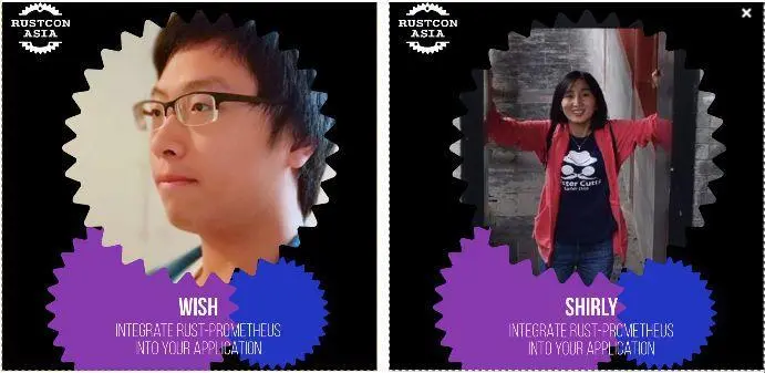 Wish 将会和 Shirly一起带来「Integrate rust-prometheus into your application」主题演讲。而在 workshop 中,他们将以 Rust 编写的简单 Web 服务器为例,教开发者如何使用 Rust-prometheus 连续收集应用程序的指标。