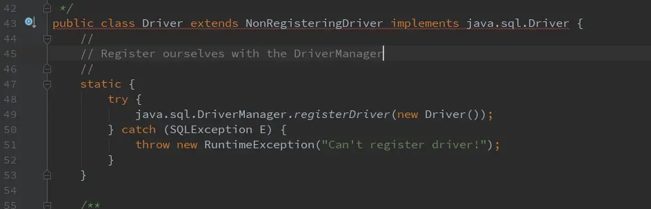 DriverManager加载mysql的驱动实现 具体内部代码有兴趣可以自己看看 待补充