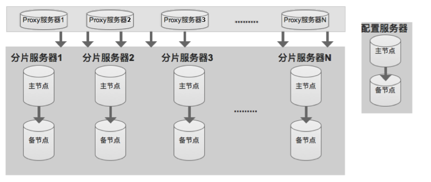 云数据库 Memcache 版由 Proxy 服务器(服务代理)、分片服务器和配置服务器三个组件组成。