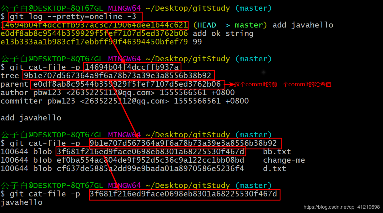 git cat-file -p ID可查看当前master的数据