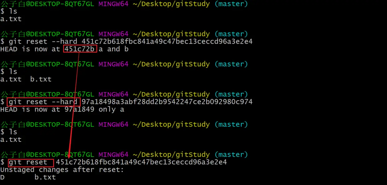 我们需要注意,使用git reset重置一般是很危险的,会彻底地丢掉历史。因为如果没有记录下重置前的commitId,一般不容易找回,除非分析.git/logs里面的日志,故重置需慎重。