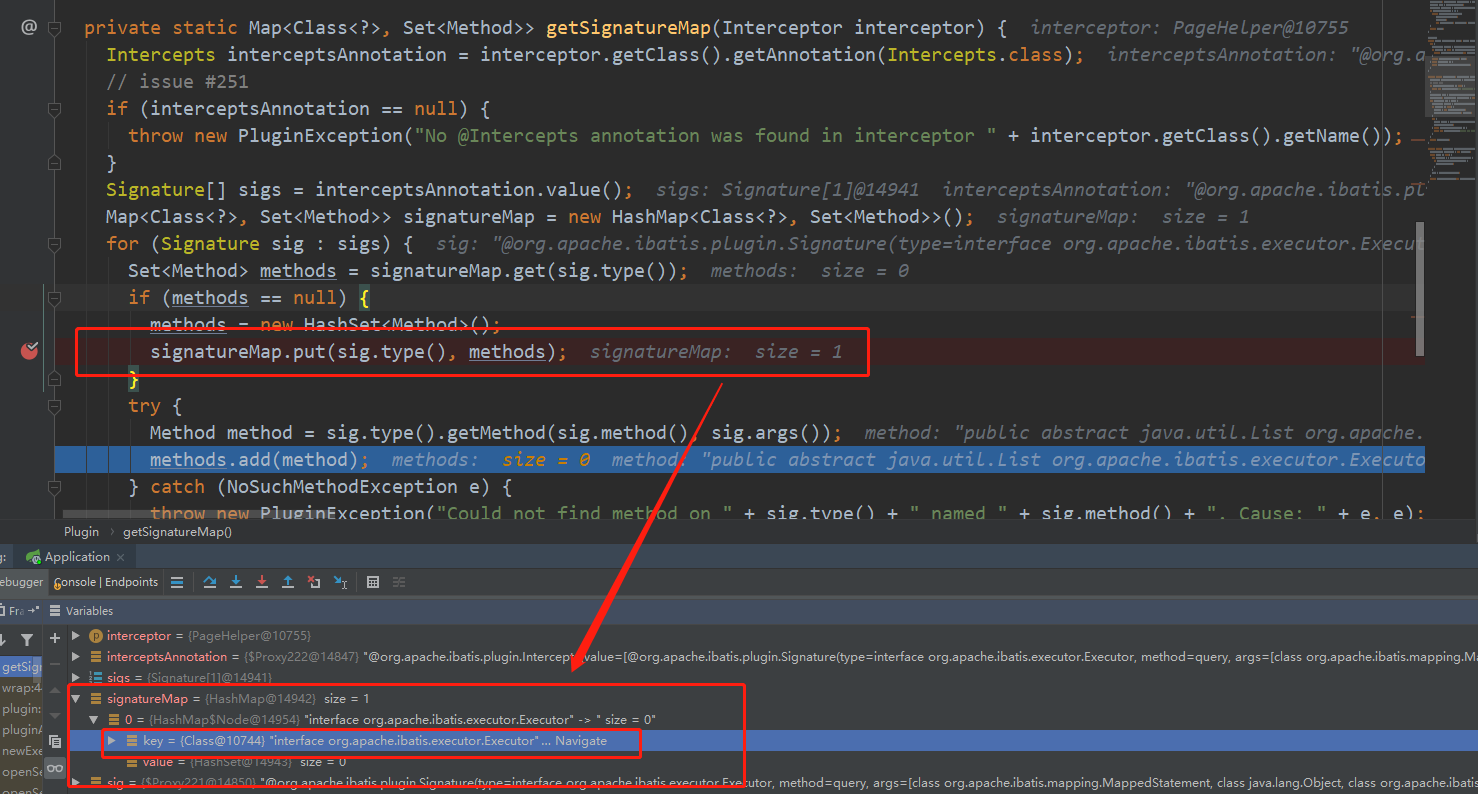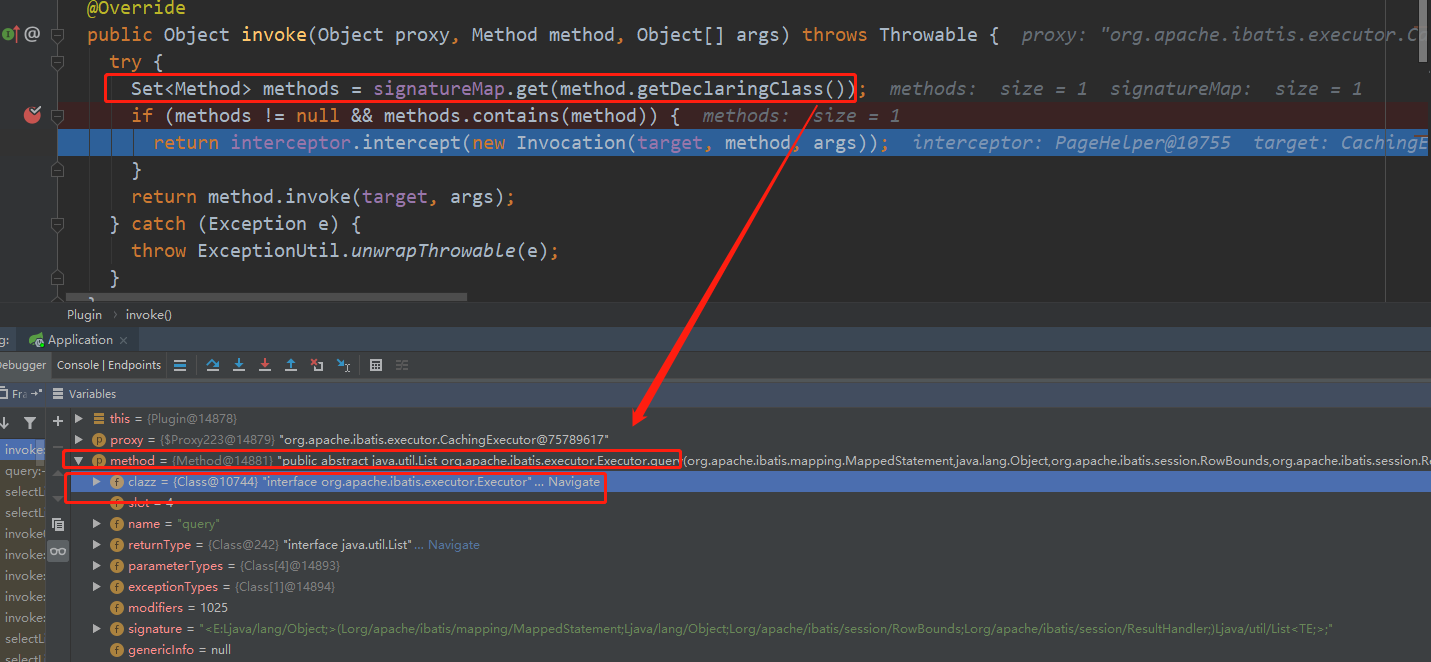 Set<Method> methods = signatureMap.get(method.getDeclaringClass());这里的 method 想要从 signatureMap 中拿到值 methods,则 method 必须是拦截器作用的四大接口中的方法,即