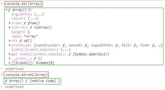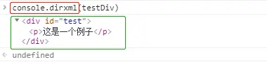 console.dirxml(): 如果可能,会输出元素的HTML/XML形式,否则就输出JavaScript对象;