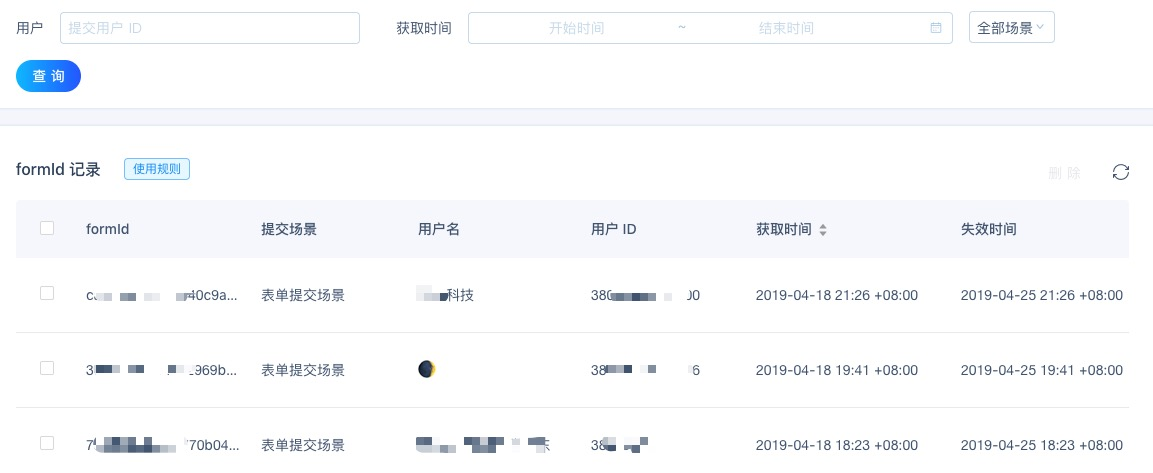 2.自动收集 formid 组件 让 formid 不足导致无法推送模板消息的状况成为过去式,两行代码即可完成接入,业务变更也无需重复埋点。