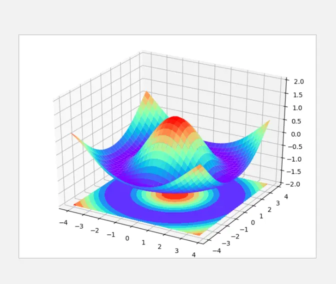 ax.contourf(X, Y, Z, zdir='z', offset=-2, cmap=plt.get_cmap('rainbow'))