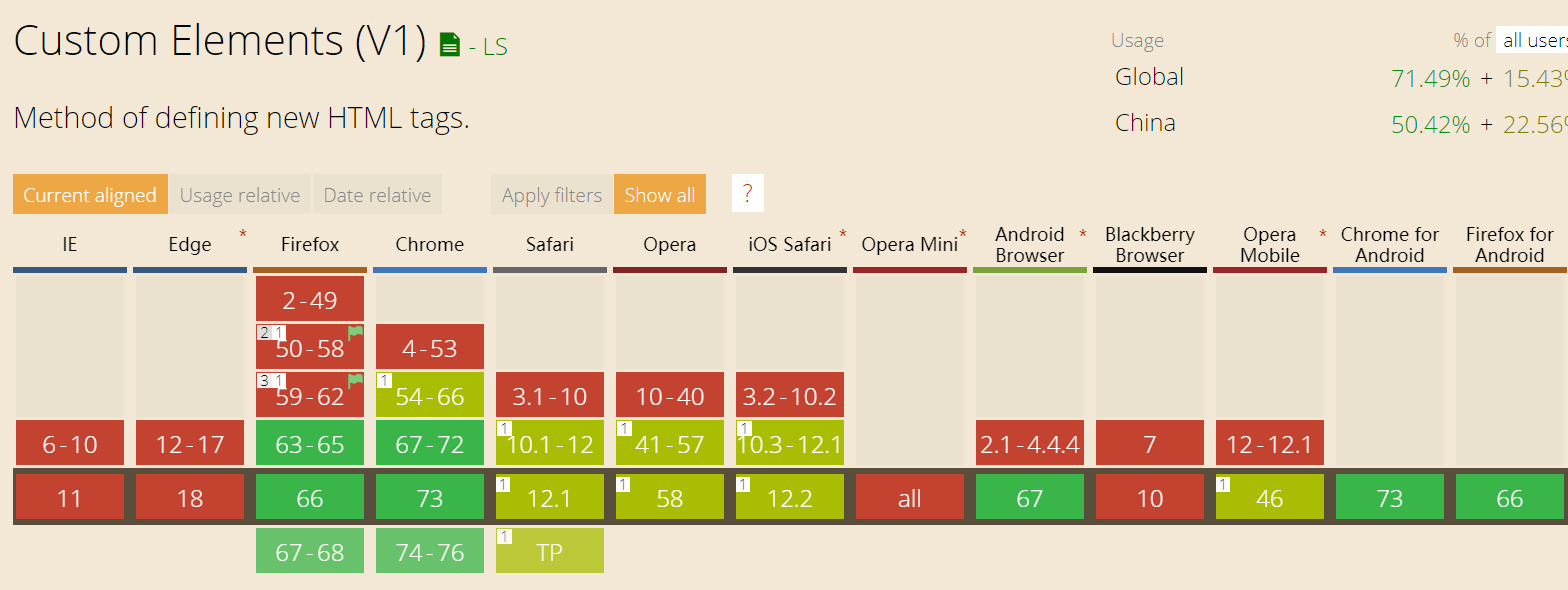 简单来说,这是一个实现自定义元素的API(类似Vue的Compont),但是这是浏览器标准。 兼容性如下: