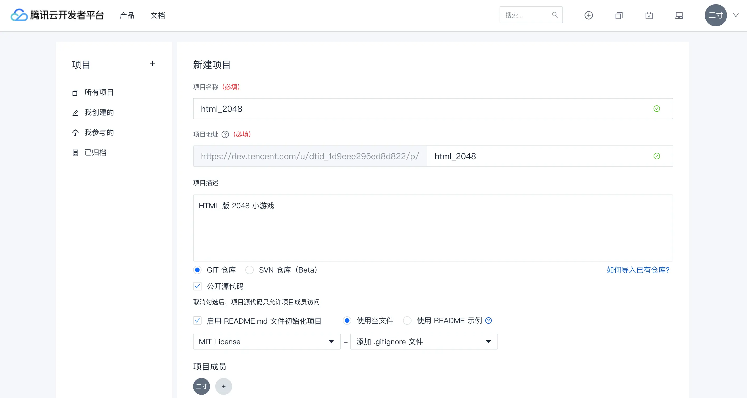至此我们在 Coding 上的项目就初始化完成了。
