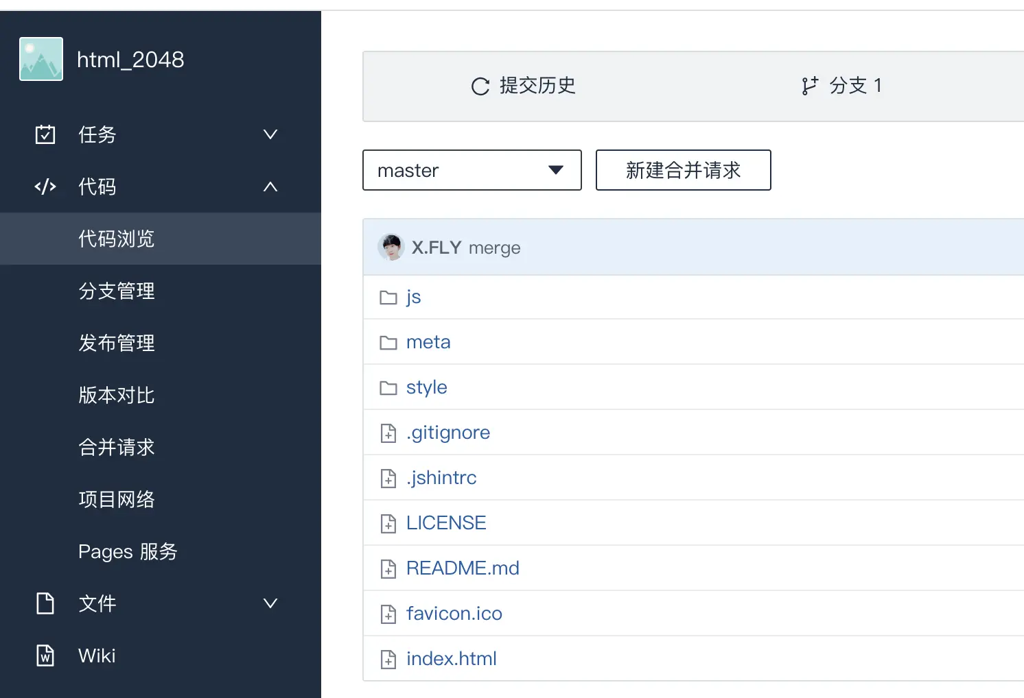 假设我们本地已经有 html_2048 这个项目了(不需要和远程仓库的项目名一致),那么我们只需要对这个项目进行 Git 仓库初始化,并绑定远程仓库链接即可,具体操作如下: