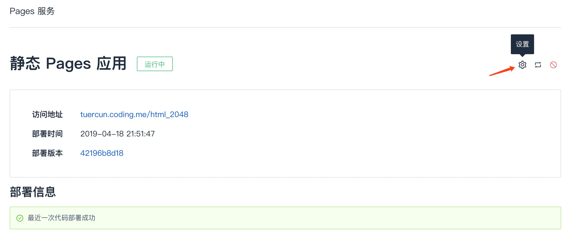 我们点击 Pages 服务页面的 设置,如下图所示: