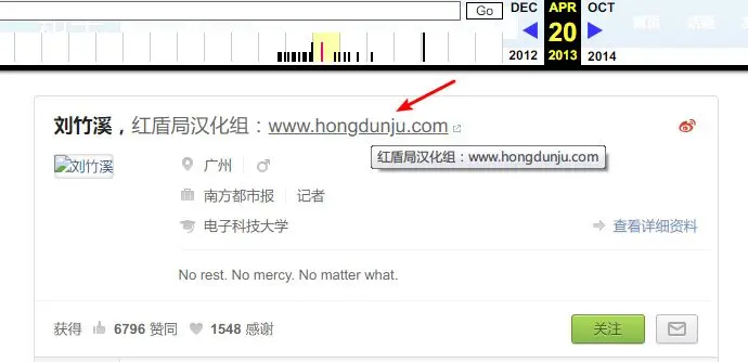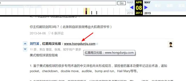 为了避免记错,我用互联网档案馆的 Wayback Machine 服务回到 2013 年确认了问题页面和个人主页上的网址渲染情况。