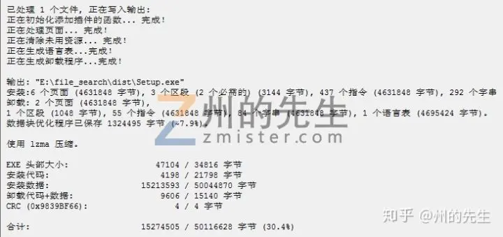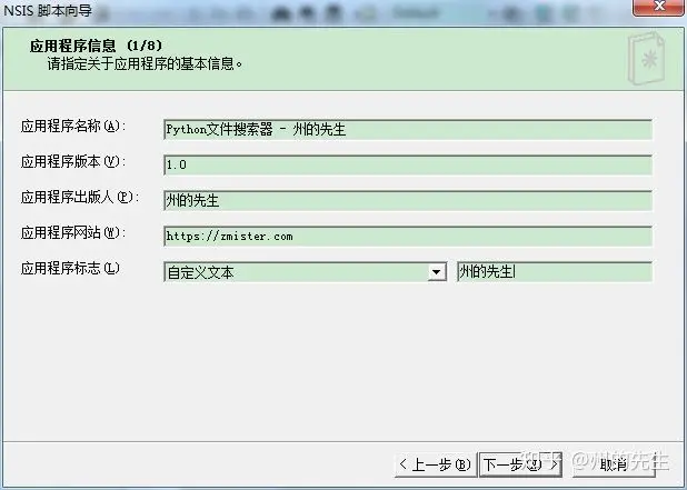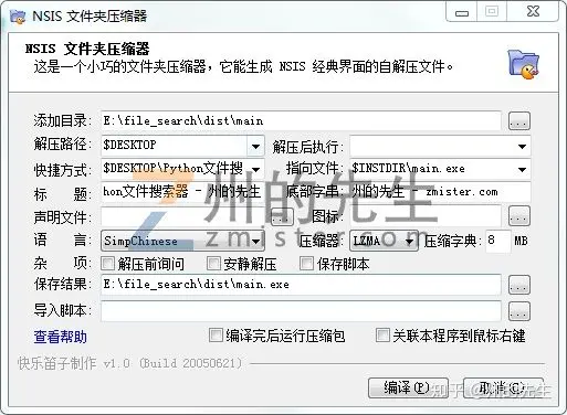 使用NSIS制作Python程序安装包 - 州的先生zmister.com示例Python程序为文章《实战 | 如何用Python实现一个图形界面的文件内容搜索程序?》中所介绍的Python文件内容搜索器。