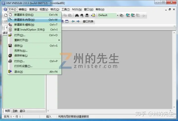 首先,打开VNISEdit编译器,从【文件】中选择【新建脚本:向导】