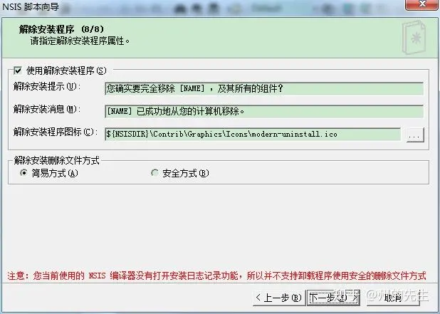 第7步也可以忽略不设置,在第8步设置卸载程序的相关信息: