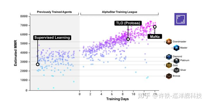 AlphaStart, 在星际争霸这样级别的游戏击败人类, 应该说这是一个了不起的胜利, 因为星际争霸这个游戏比围棋要接近真实世界很多, 信息是局部的,远方的世界笼罩在黑雾里, 当下和未来是连续的, 战略需要跨越很多时间尺度。 这些问题, 需要比阿法狗更加复杂的接近方法。 AlphaStart以一个具有记忆的神经网络LSTM为基础, 然后用到的学习方法, 正是进化算法加机器学习(强化+监督学习)。 应该说, 这才是这套方法的灵魂(参见论文AlphaStart: An Evolutionary Computation Perspective)。