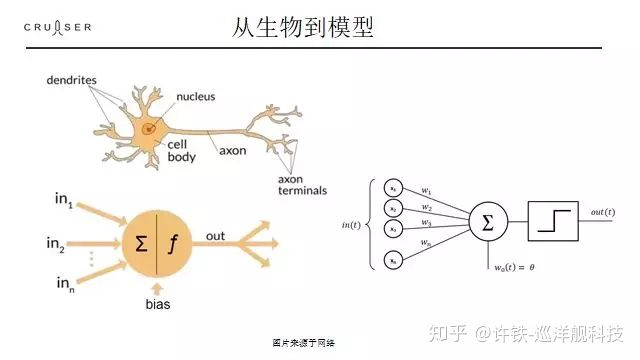 正确的分类,是认知的基础,我们对事物的感知比如色彩,物体的形状等,其实都是离散的,而物理信号是连续的,比如光波,声波。这里面的中间步骤就是模数转化,把连续的信号转化成离散的样子,这正是一个分类器干的事情。一个单个神经元可以执行一个简单的基于感知信号的if else语句。 先收集一下特征做个加和,if大于一个值我就放电,小于我就不放电,就这么简单。晶体管当然也在干这个事情。 神经细胞与晶体管和计算机的根本区别在于可塑性。或者更准确的说具有学习能力。从机器学习的角度看, 它实现的是一个可以学习的分类器,就和我们上次课讲的一样, 具有自己调整权重的能力, 也就是调整这个w1和w2.