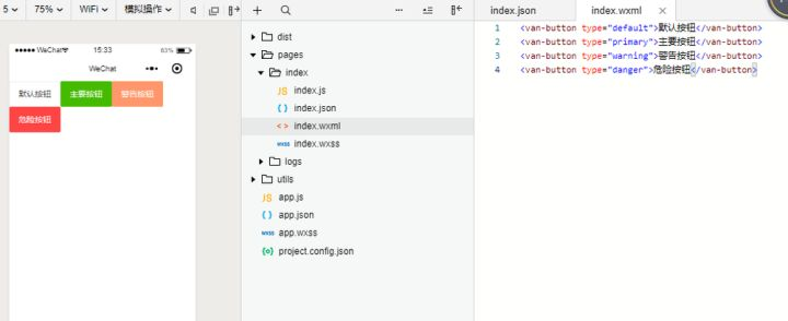 <van-button type="danger">危险按钮</van-button>9:引入成功:然后你就可以依靠文档来进行复制黏贴了,因为自己写css的日子真的又烦人又浪费时间呐。
