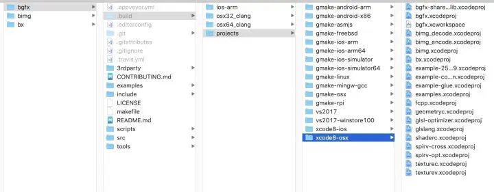 git clone git://github.com/bkaradzic/bgfx.git命令执行完毕之后,目录结构如下