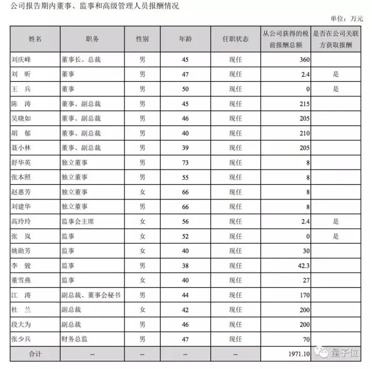 而且讯飞上下也一以贯之,一同被披露的高管薪资,比起动辄千万年薪、百万美元收入的众多AI公司,讯飞董事长刘庆峰年薪总额也才360万元。