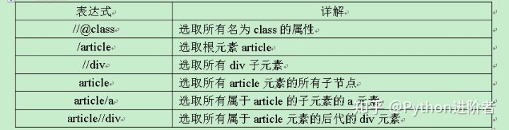 3、理解这些节点之间的关系之后,可以方便我们更好的理解Xpath语法,下表是部分常用的Xpath语法。