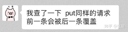 很快有人回答“put请求单个数据”,后面提问人又去网上查了资料,查出来 put 和 post的区别是 “put 同样的请求,前一条会被后一条覆盖”。