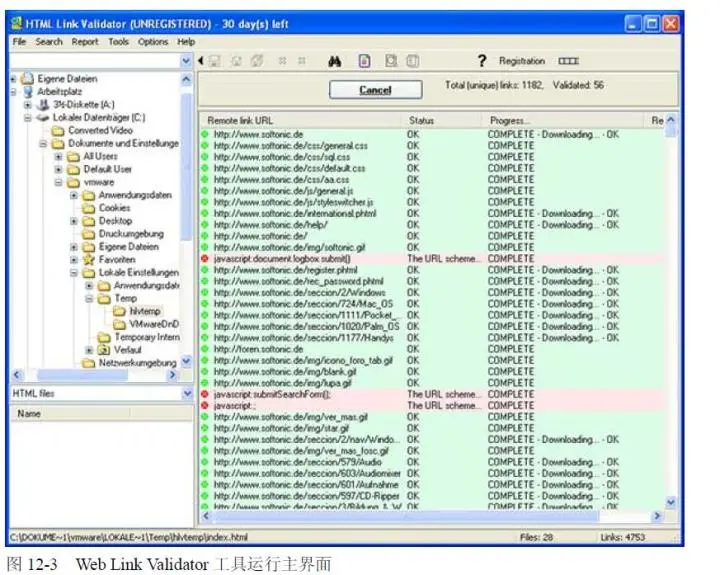 HTML Link Validator 运行主界面如图12-2 所示