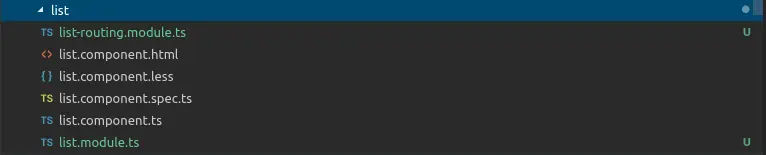 运行成功会多出两个文件list-routing.module.ts和list.module.ts