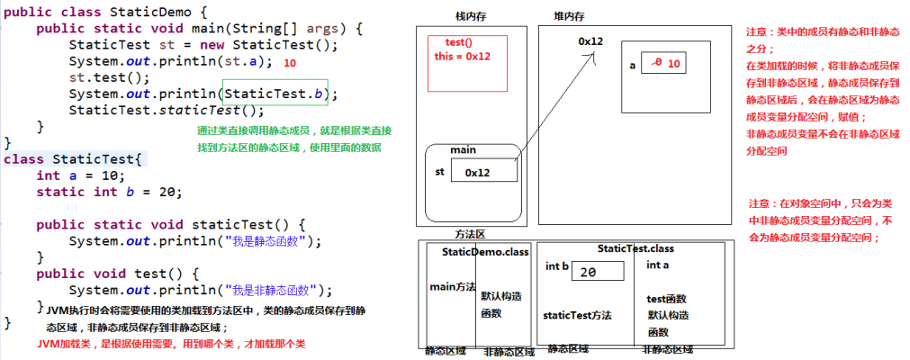 而静态成员变量直接保存在方法区的静态区域,和对象无关。静态函数里面也没有this ,所以静态函数和静态成员变量都可以直接通过类名调用;