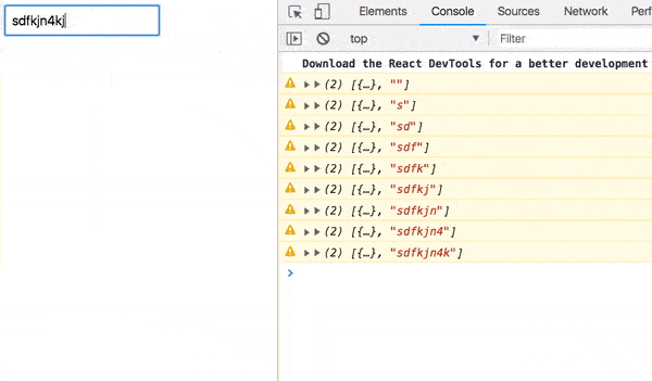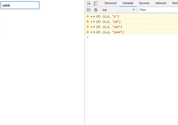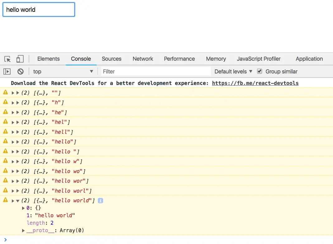 现在,每当你输入一个字符时,[props, value] 就会被记录下来。