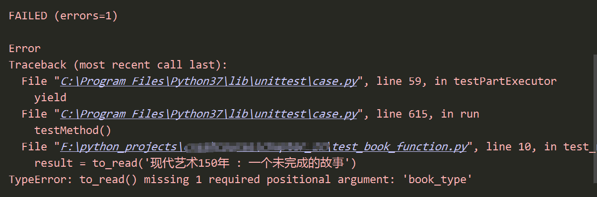 - 第一行 FAILED,表示没有完全通过测试,errors 指出了出错个数。