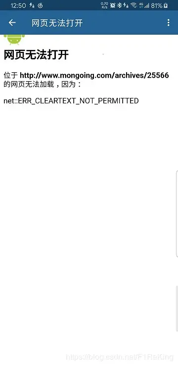 最近在写一个新闻阅读app的时候发现android9.0上webview无法加载http的url。 查了下资料发现,从Android 9.0(API级别28)开始,默认情况下禁用明文支持。因此http的url均无法在webview中加载